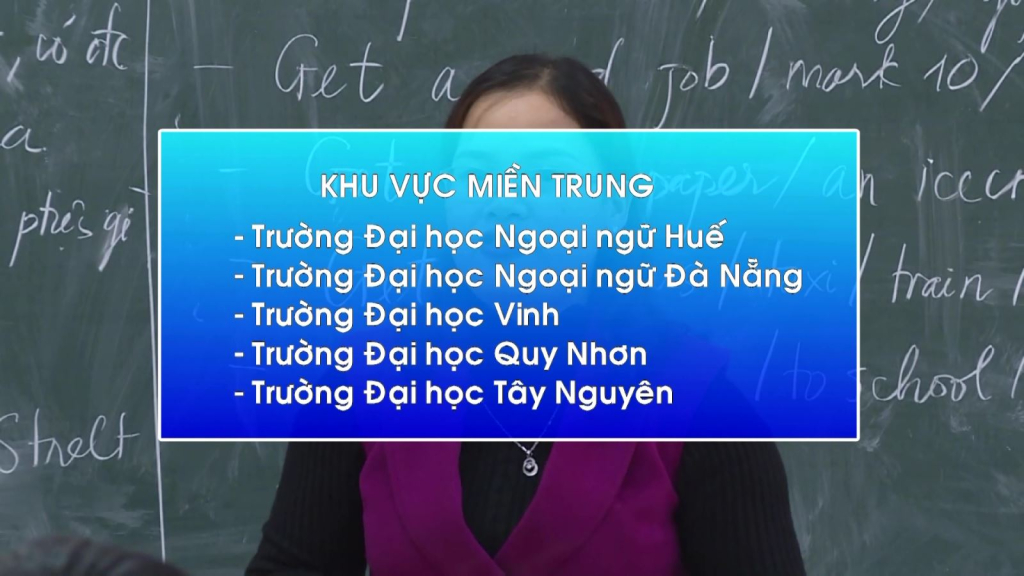 Khu vực miền Trung gồm: Trường Đại học Ngoại ngữ (Đại học Huế), Trường Đại học Ngoại ngữ (Đại học Đà Nẵng), Trường Đại học Vinh, Trường Đại học Quy Nhơn và Trường Đại học Tây Nguyên./.