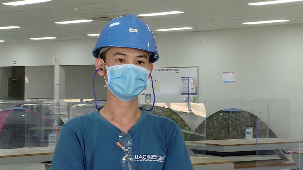 Anh Nguyễn Mạnh Hậu, Nhà máy Sản xuất linh kiện Hàng không UAC, nói: Theo khuyến nghị của Trung tâm phòng chống dịch thì tụi em được kiểm tra mẫu xét nghiệm hàng tuần và hàng ngày tụi em được kiểm tra nhiệt độ 4 lần ngày và giờ giấc sinh hoạt cũng theo Trung tâm phòng dịch thì tụi em cũng cảm thấy yên tâm.