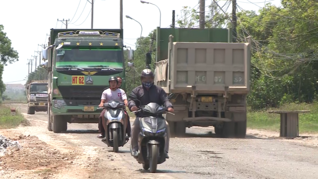 Từng đoàn xe trọng tải lớn chạy liên tục trên đường. Nguy hiểm rình rập người đi đường. Chỉ riêng tuần qua, trên tuyến đường này đã xảy ra 02 vụ tai nạn giao thông làm 02 người tử vong và 01 người bị thương nặng. Người dân lo lắng, bất an.