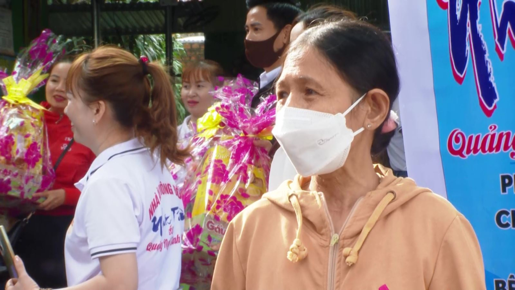 Bà Nguyễn Thị Thu, Xã Nghĩa Dõng, huyện Tư Nghĩa, Quảng Ngãi nói: Được giúp đỡ đủ thứ. Nội tiền vé xe về quê đã rất mắc. Cũng đỡ rất nhiều, đi mua vé xe, mọi năm đi mua khó lắm.