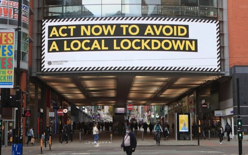 Theo đó, lệnh phong tỏa vùng Greater Manchester sẽ được bắt đầu từ ngày 23/10 với các quy định hạn chế đi lại và đóng cử các quán bar, nhà hàng.