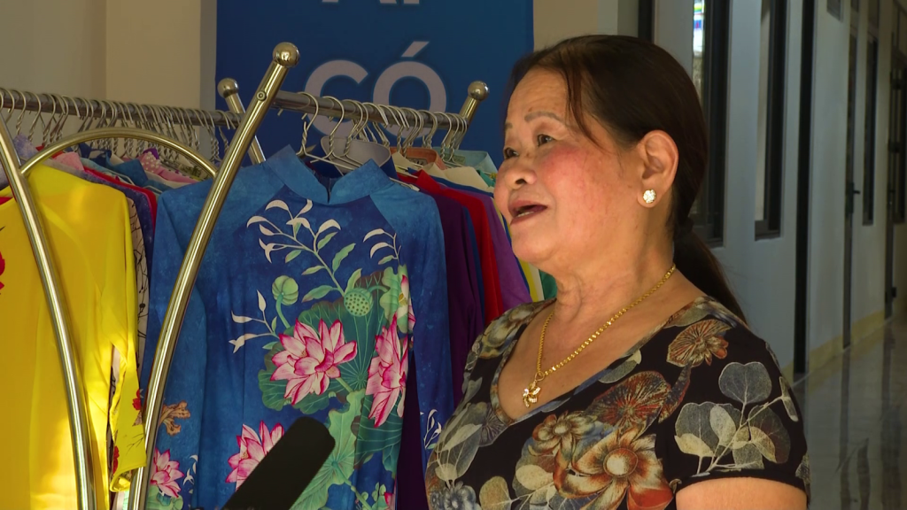 Bà Phạm Thị Thu Ba, Phường Lê Hồng Phong, thành phố Quảng Ngãi nói: Cô cũng nghe ở đây cho áo dài, ai cần thì tới nhận. Mà cô thấy áo dài rất đẹp, ủi sạch sẽ đàng hoàng, cô rất thích. Cô cũng thấy nhiều bộ áo dài rất đẹp. Ngày 8/3 cô bận đi chơi, có đám cưới, đám tiệc cô bận.