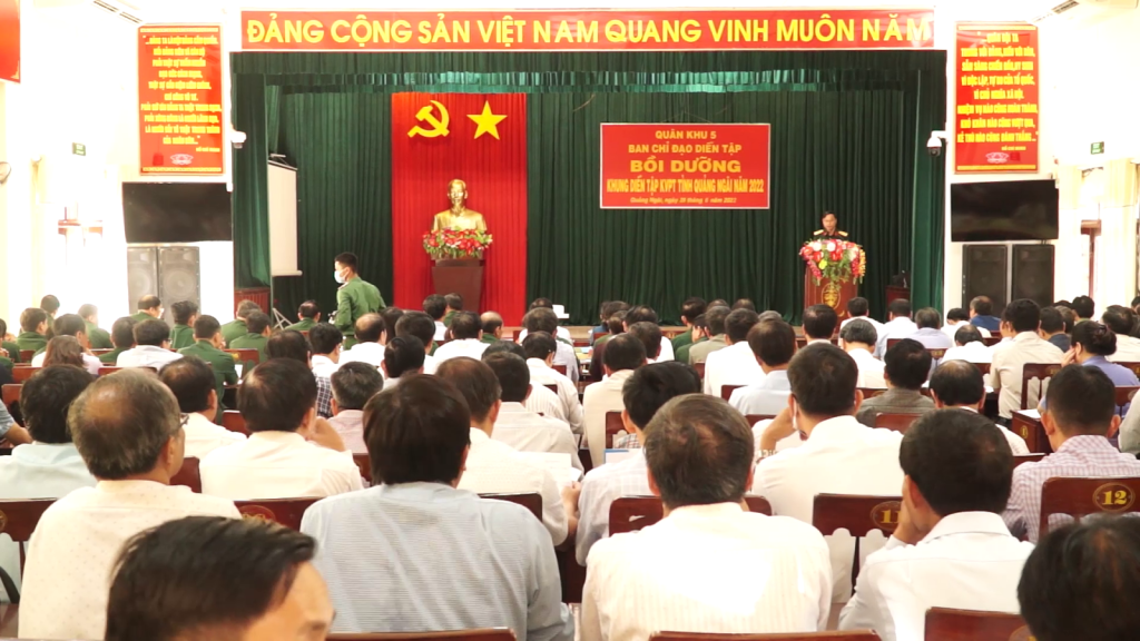 Sáng ngày 29/6, Ban chỉ đạo diễn tập Quân khu 5 đã tổ chức bồi dưỡng khung diễn tập khu vực phòng thủ tỉnh Quảng Ngãi năm 2022. Dự và chỉ đạo tập huấn có thiếu tướng Lê Ngọc Hải, Phó tư lệnh kiêm Tham mưu trưởng Quân khu 5. Về phía lãnh đạo tỉnh có Phó Bí thư Tỉnh ủy, Chủ tịch UBND tỉnh Đặng Văn Minh, Phó bí thư Tỉnh ủy Đinh Thị Hồng Minh, Phó Chủ tịch Thường trực UBND tỉnh Trần Hoàng Tuấn, Phó Chủ tịch HĐND tỉnh Nguyễn Cao Phúc cùng các thành viên trong Ban tổ chức và khung diễn tập của tỉnh.