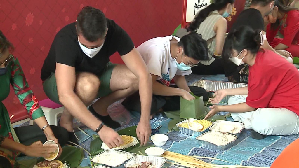 Bánh chưng xanh mang tết đến với kiều bào Singapore
