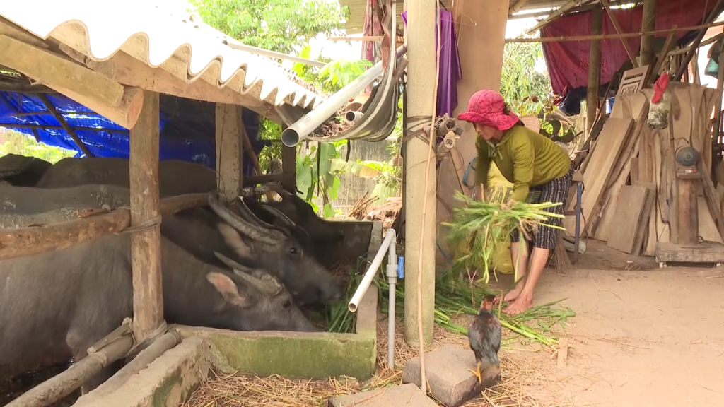 Chị Đinh Thị Nhi, Xã Long Mai, huyện Minh Long, Quảng Ngãi nói: Trời lạnh thì mình lấy ni lông che chắn chuồng lại, không trả trâu ra đồng nữa. Mình lấy rơm cỏ cho đàn trâu ăn.