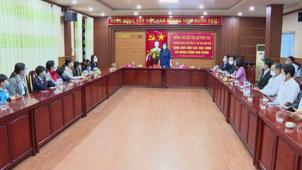 Bí thư Tỉnh ủy Bùi Thị Quỳnh Vân đã trao tặng 15 máy tính bảng, trị giá 90 triệu đồng cho học sinh nghèo, hoàn cảnh khó khăn ở huyện Tư Nghĩa, giúp các em có điều kiện học tập tốt hơn trong điều kiện dịch bệnh COVID-19. Đây là món quà cá nhân của Bí thư Tỉnh uỷ dành tặng riêng cho các em học sinh nghèo ở huyện Tư Nghĩa.