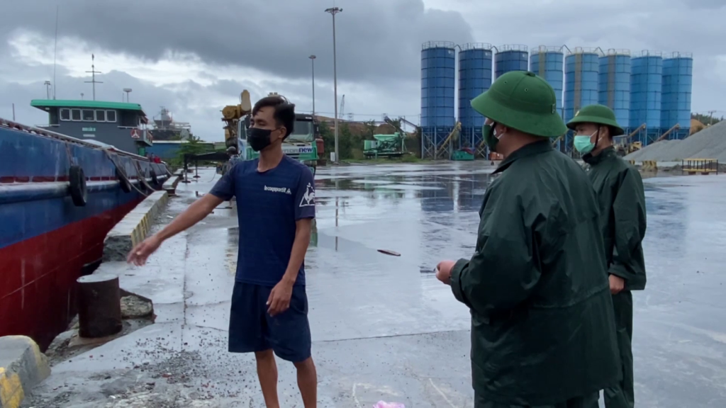 Đại úy Đỗ Bảo Châu, Đồn trưởng Đồn Biên phòng Cửa khẩu Cảng Dung Quất, Quảng Ngãi cho biết: Tiến hành thống kê, kiểm đếm toàn bộ số tàu thuyền đang neo đậu trên vùng nước cảng tất cả các tàu nước ngoài, tàu hàng, tàu thi công, nắm số điện thoại người phụ trách. Tuyên truyền, nhắc nhở số phương tiện đang neo đậu ở cảng chằng buột, cử người trực canh sẵn sàng xử lý các sự cố.
