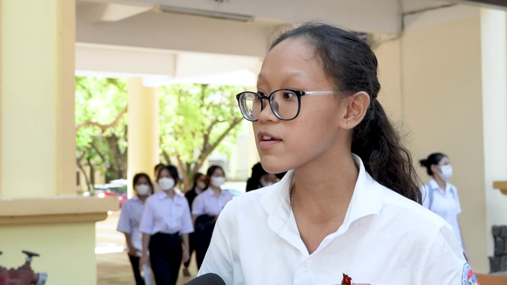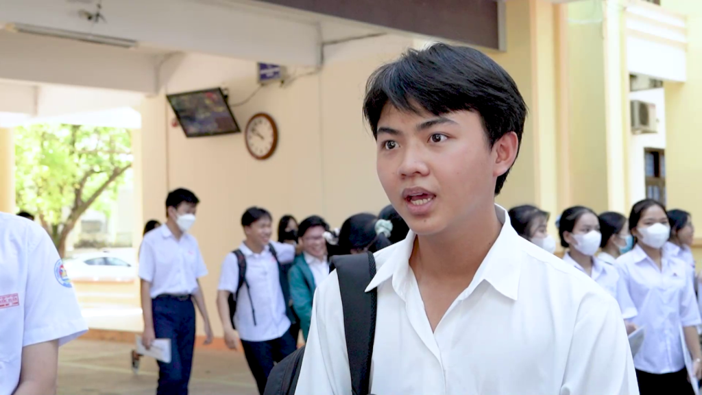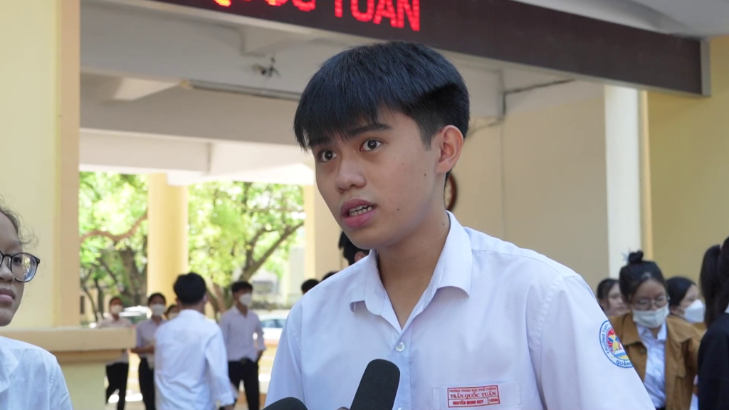 Thí sinh Nguyễn Minh Huy chia sẻ: Bản thân con thấy phần nghị luận văn học là hay nhất, nó chứa nhiều hoàn cảnh của người dân.