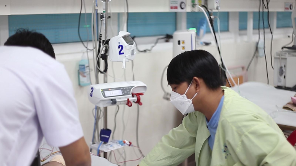 Người nhà bệnh nhân cho biết: Do nóng, sốt cũng có đi khám nhưng tưởng là viêm phế quản hô hấp, rối loạn tiêu hóa thôi, uống thuốc có dấu hiện hạ sốt bình thường. Sáng hôm đó thì thấy cháy nó nằm li bì, đem cháu đi khám lúc đó thì thấy tay, chân hơi tím tái sốt kiểu sốt lạnh, vô bác sỹ nhập viện báo cháu bị sốt xuất huyết.