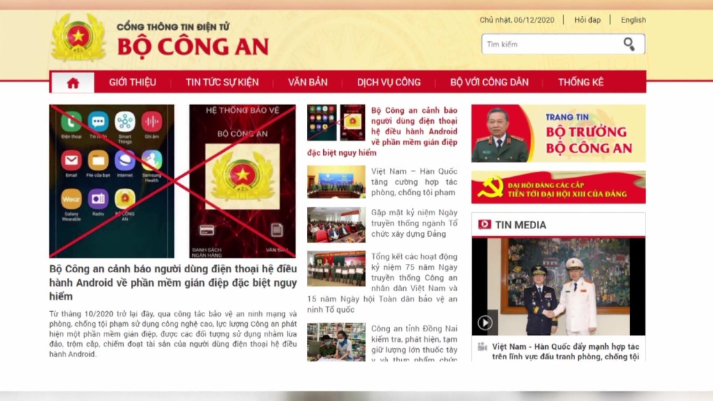 Phần mềm gián điệp này được các đối tượng ngụy tạo, giả danh ứng dụng điện thoại mang tên "Bộ Công an". Thủ đoạn mà các đối tượng sử dụng là: dùng công nghệ VOIP tạo lập các số điện thoại ảo, giả mạo số điện thoại công khai của cơ quan thực thi pháp luật thông báo cho bị hại đang bị điều tra, nếu không hợp tác sẽ bị bắt giữ, khởi tố. Sau đó yêu cầu nạn nhân thay đổi điện thoại đang dùng sang sử dụng điện thoại hệ điều hành Android. Sau khi nạn nhân cài đặt App mang tên “Bộ Công an” theo hướng dẫn của các đối tượng, nạn nhân sẽ phải điền thêm các trường thông tin hiển thị trên App giả mạo này như: tên đăng nhập, mật khẩu, tài khoản ngân hàng, họ tên, số chứng minh nhân dân (căn cước công dân)... Các thông tin này sẽ được chuyển về máy chủ do các đối tượng quản lý. Nguy hiểm hơn, các đối tượng còn có thể điều khiển điện thoại di động của người dùng từ xa mà chủ điện thoại không hề hay biết. Bộ Công an khuyến cáo người dân nâng cao cảnh giác trước thủ đoạn lừa đảo mới của tội phạm mạng; tuyệt đối không truy cập các trang tin không chính thống; không cài đặt các phần mềm, ứng dụng từ các nguồn không chính thống./.