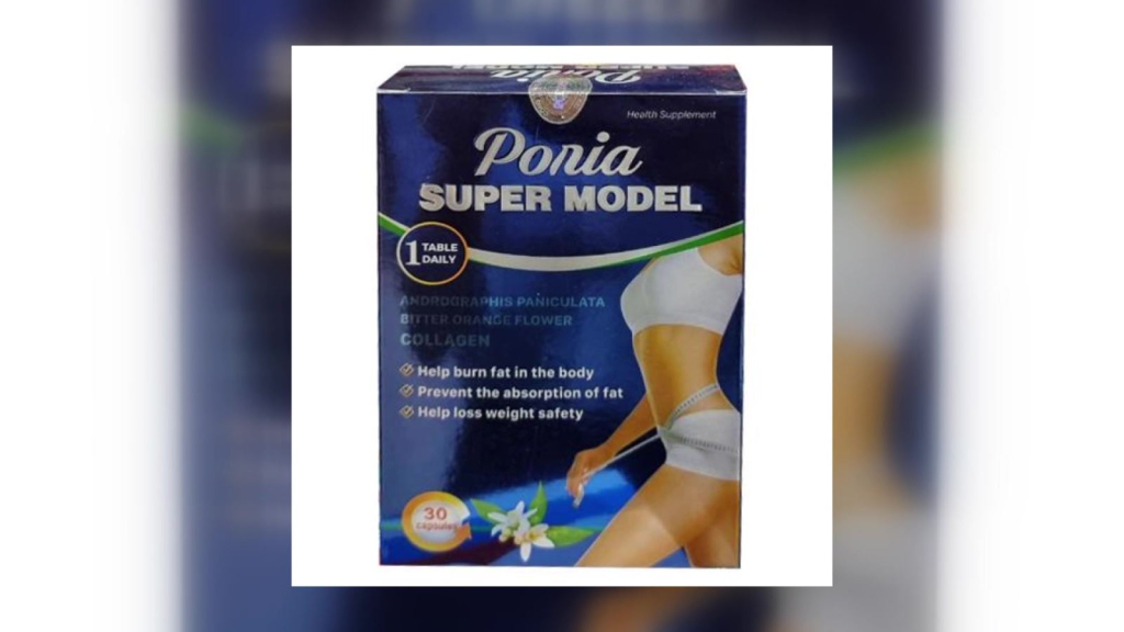 Cục An toàn thực phẩm, Bộ Y tế vừa nhận được báo cáo kết quả kiểm nghiệm của Chi cục An toàn vệ sinh thực phẩm tỉnh Quảng Ninh, theo đó phát hiện sản phẩm giảm cân có tên là Poria super model không có nguồn gốc xuất xứ, đặc biệt có chứa chất cấm Sibutramine