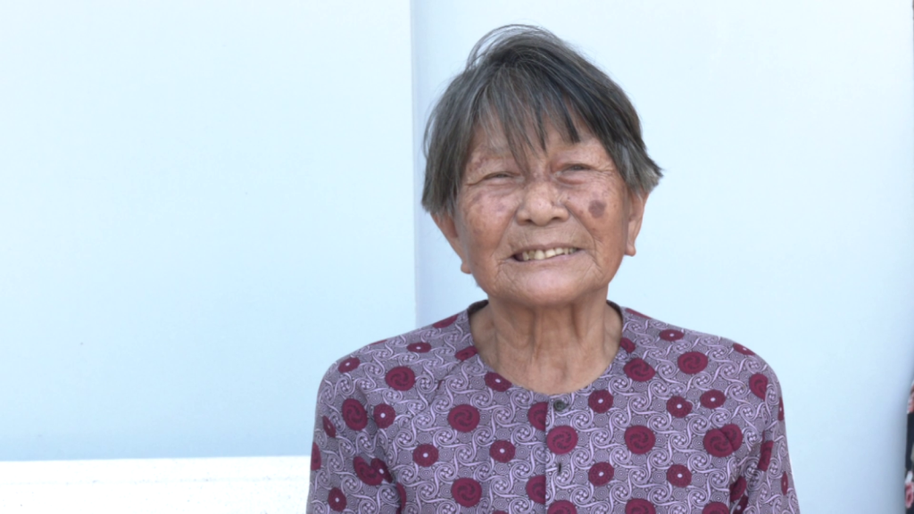 Bà Phạm Thị Phi, Huyện Lý Sơn, Quảng Ngãi nói: Được khám bệnh cấp phát thuốc rất mừng, cũng nhờ anh em Cảnh sát biển.
