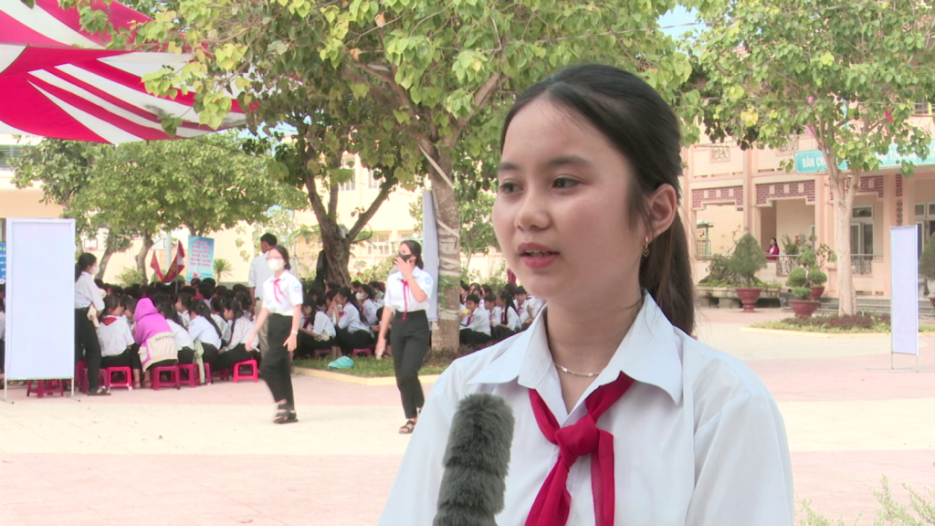 Em Trần Diệu Thùy, Học sinh trường THCS An Vĩnh, Lý Sơn, Quảng Ngãi chia sẻ: Qua tiết học ngoại khóa em cảm thấy rất thú vị, cuộc thi truyền cảm hứng cho chúng em về tình yêu biển đảo quê hương.