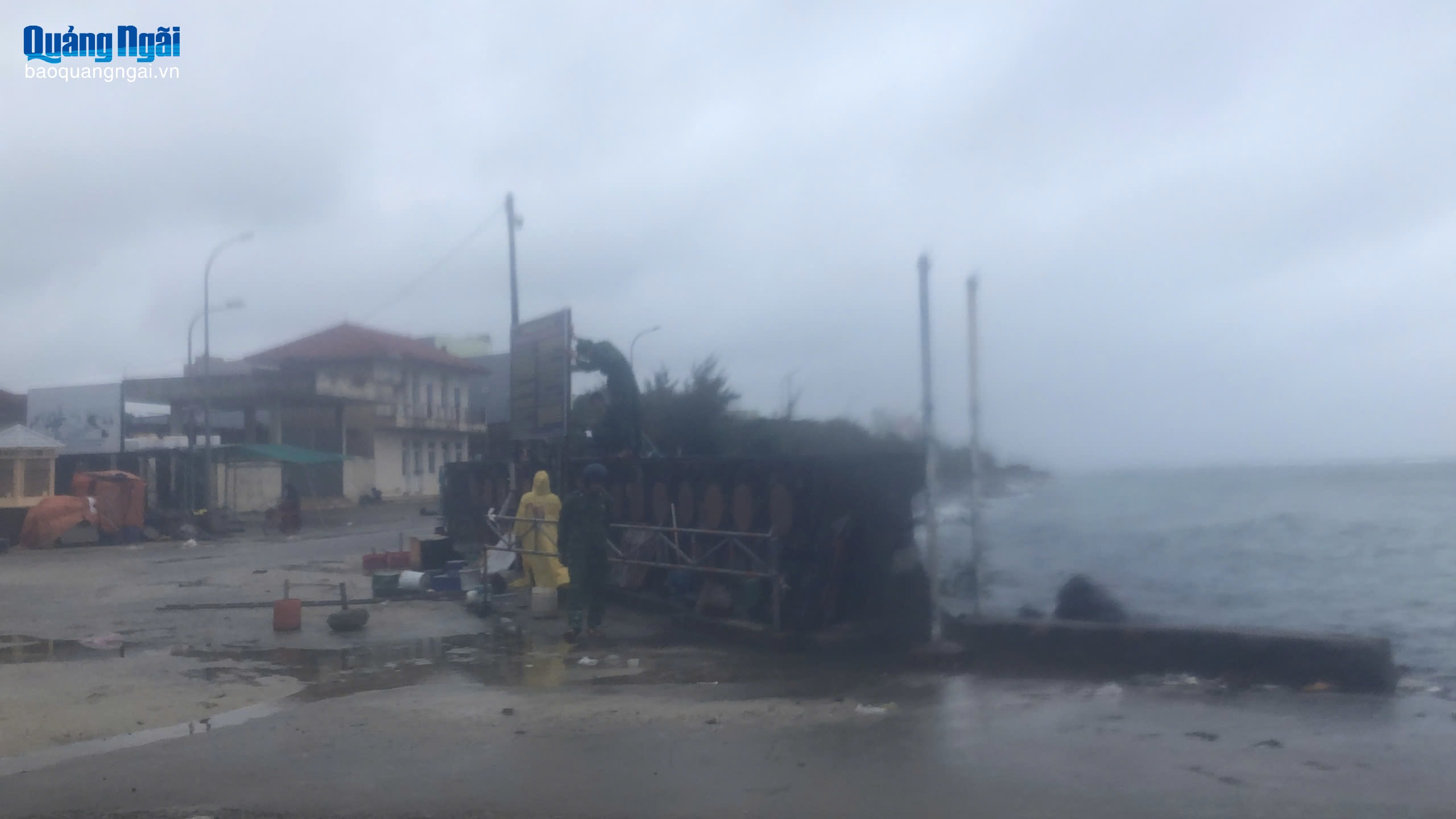 Trong đêm 5/11, Đồn Biên phòng Lý Sơn tổ chức bắn pháo hiệu, truyền tin khẩn cấp đến các tàu thuyền còn hoạt động trên biển, cảnh báo bão số 13 đang tiến gần và khuyến cáo ngư dân nhanh chóng tìm nơi trú ẩn an toàn. Cùng với đó, đơn vị cũng thông báo rộng rãi cho người dân trong vùng về diễn biến thời tiết để chủ động gia cố nhà cửa, phương tiện, đảm bảo an toàn về người và tài sản.