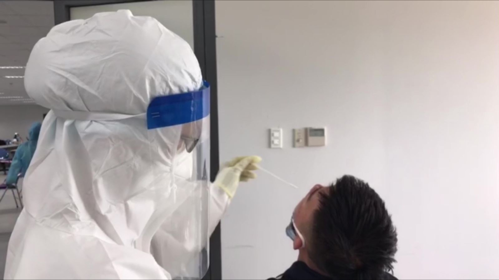 Cấp tốc xét nghiệm toàn bộ công nhân làm việc tại Vsip Quảng Ngãi. Ảnh: Lương Triều