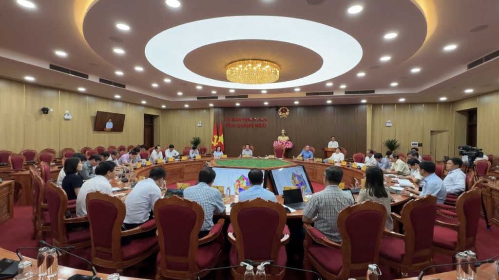 Sáng nay 23/02, Chủ tịch UBND tỉnh Đặng Văn Minh chủ trì cuộc họp để nghe và cho ý kiến về các đồ án Quy hoạch phân khu xây dựng tỷ lệ 1/2000 Khu đô thị, công nghiệp, dịch vụ Tây Bắc Dung Quất và Khu công nghiệp, đô thị, dịch vụ Dung Quất II. Dự họp có các Phó Chủ tịch UBND tỉnh TRần Hoàng Tuấn, Võ Phiên, Trần Phước Hiền và các thành viên UBND tỉnh.