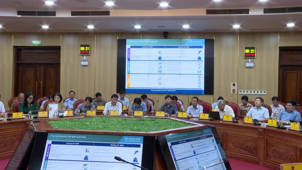 Sáng ngày 19/9, Chủ tịch UBND tỉnh Nguyễn Hoàng Giang chủ trì cuộc họp cho ý kiến về kế hoạch triển khai thực hiện Quy hoạch tỉnh Quảng Ngãi thời kỳ 2021- 2030, tầm nhìn đến năm 2050. Dự họp có Phó Chủ tịch Thường trực UBND tỉnh Trần Hoàng Tuấn; Phó Chủ tịch UBND tỉnh Võ Phiên, lãnh đạo sở, ban, ngành và địa phương.