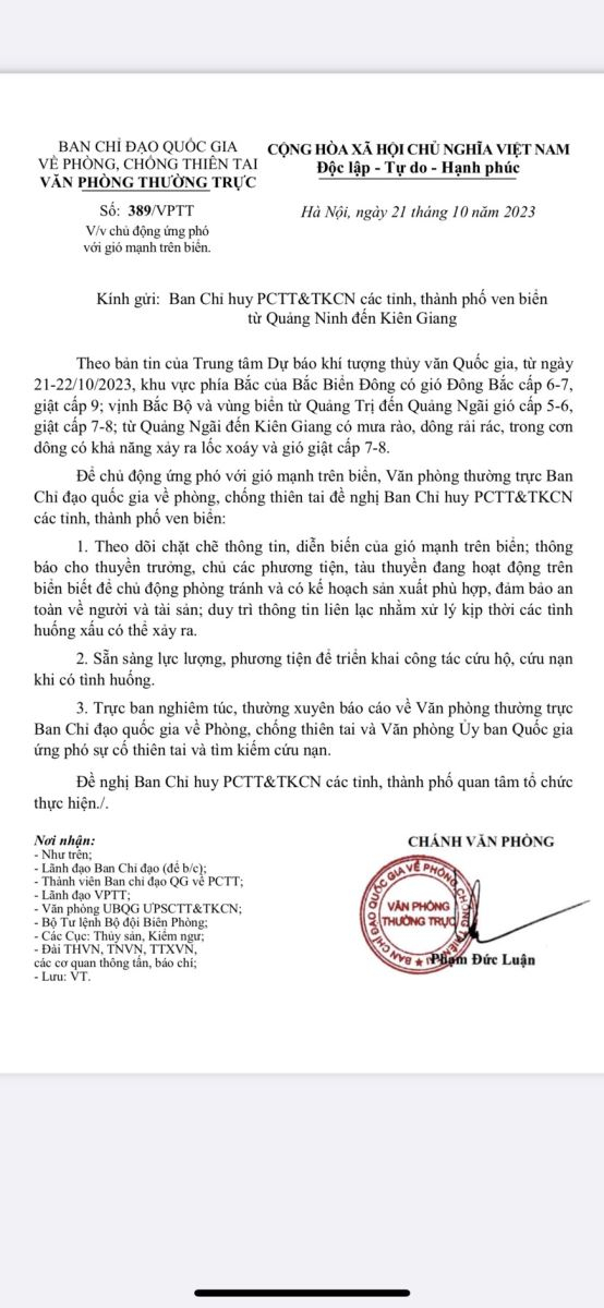 Thông tin từ Trung tâm Dự báo khí tượng thủy văn Quốc gia: