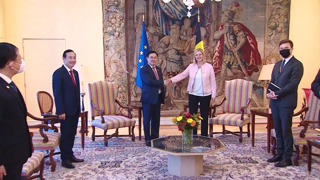 Chủ tịch Quốc hội Vương Đình Huệ cho biết Việt Nam sẵn sàng là cầu nối giữa EU, Bỉ với ASEAN, đồng thời mong muốn trao đổi đoàn cấp cao, các cấp, nhất là khi đại dịch COVID-19 được kiểm soát. Chủ tịch Quốc hội cảm ơn Bỉ đã ủng hộ phê chuẩn EVFTA, đề nghị Chủ tịch Hạ viện Bỉ quan tâm để EU sớm gỡ thẻ vàng thủy sản IUU, đem lại lợi ích cho người dân và doanh nghiệp hai nước; đồng thời cho biết Việt Nam đang rất nỗ lực kiểm soát vấn đề này và đạt được những kết quả tích cực.