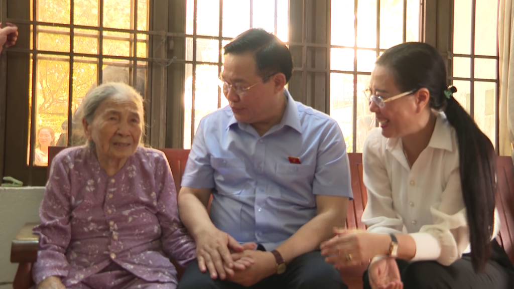Chủ tịch Quốc hội Vương Đình Huệ và Đoàn công tác đã đến thăm Mẹ Việt Nam Anh hùng Nguyễn Thị Thư, sinh năm 1929 ở Phường Trần phú, thành phố Quảng Ngãi
