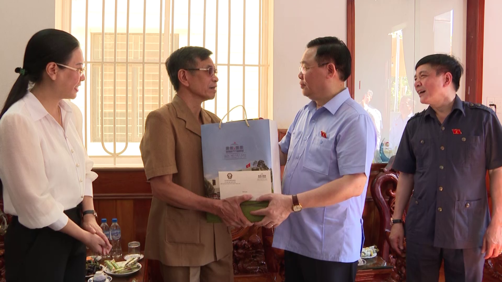 Cũng trong sáng nay 26/7, Chủ tịch Quốc hội Vương Đình Huệ và Đoàn công tác đã đi thăm và tặng quà gia đình người có công cách mạng ở thành phố Quảng Ngãi.