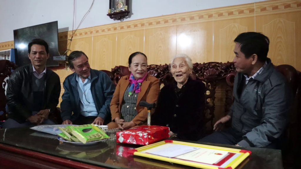 Thăm, mừng thọ cụ bà Phạm Thị Dục, ở Tổ dân phố 4 thị trấn Trà Xuân tròn 90 tuổi và tặng phần quà 700 ngàn đồng.