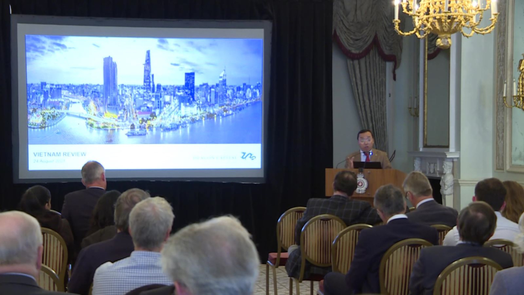 Tại Hội thảo về tình hình kinh tế Việt Nam do Công ty Dragon Capital tổ chức hôm 1/9 tại London, trước rất đông khách mời, Đại sứ Việt Nam tại Anh Nguyễn Hoàng Long khẳng định quyết tâm của Chính phủ Việt Nam trong việc đổi mới, mở cửa nền kinh tế và thúc đẩy quá trình tư nhân hóa doanh nghiệp nhà nước.