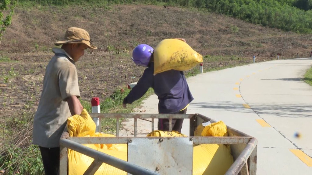 Chị Đinh Thị Thê, xã Long Mai, huyện Minh Long, tỉnh Quảng Ngãi cho biết: Trời nắng nóng, phải mang nước lên tưới chứ không keo sẽ chết.