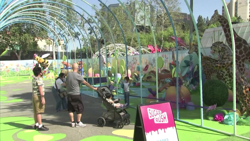 Công viên lớn nhất Califorrnia của Mỹ đã được biến thành công viên kẹo ngọt, với những chiếc kẹo khổng lồ đủ màu sắc, đang thu hút hàng nghìn khách tham quan tại đây . Phần lớn trong số này là các em nhỏ.
