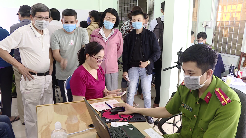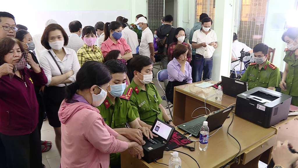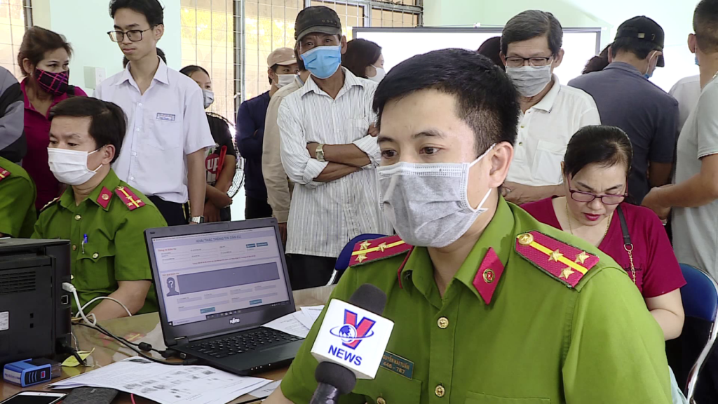 Thượng úy Nguyễn Hải Tuấn, Đội QLHC Công an quận Sơn Trà, thành phố Đà Nẵng, nói: ”chúng tôi chia làm 2 tổ, một tổ làm việc trực tiếp tại bộ phận một cửa quận từ 7h15 đến 22h, có thể làm thêm, và một tổ làm lưu động tại các phường, trường học để kịp tiến độ đề ra”.