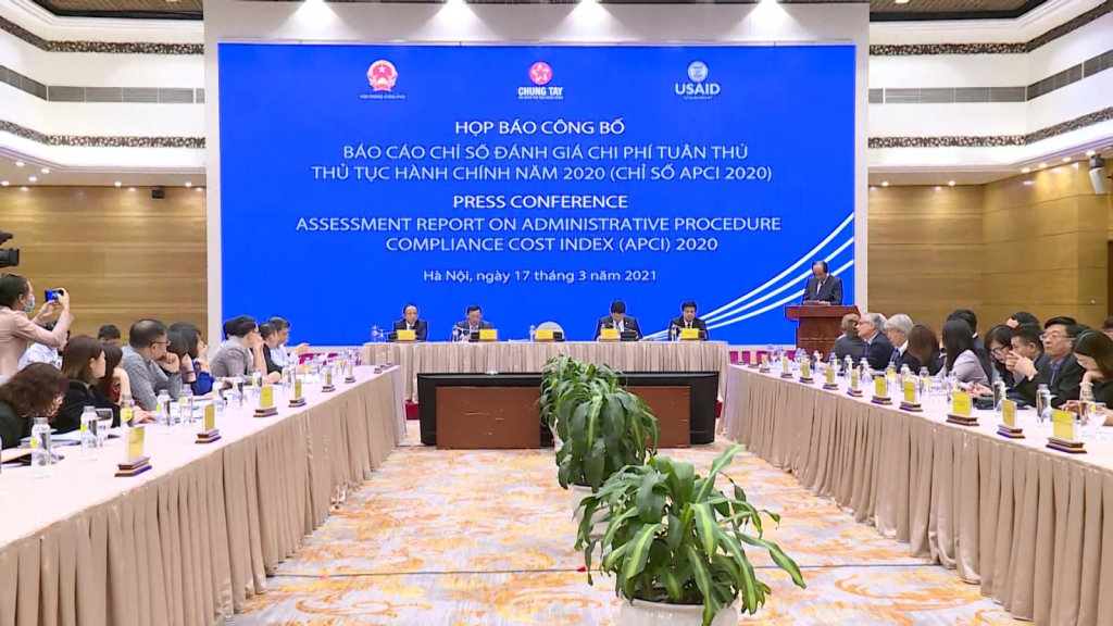 Sáng nay, Hội đồng Tư vấn cải cách thủ tục hành chính của Thủ tướng Chính phủ tổ chức Họp báo công bố Báo cáo Chỉ số đánh giá chi phí tuân thủ thủ tục hành chính năm 2020, gọi tắt là APCI 2020, dưới sự chủ trì của ông Mai Tiến Dũng, Bộ trưởng, Chủ nhiệm Văn phòng Chính phủ, Chủ tịch Hội đồng tư vấn cải cách thủ tục hành chính của Thủ tướng Chính phủ.