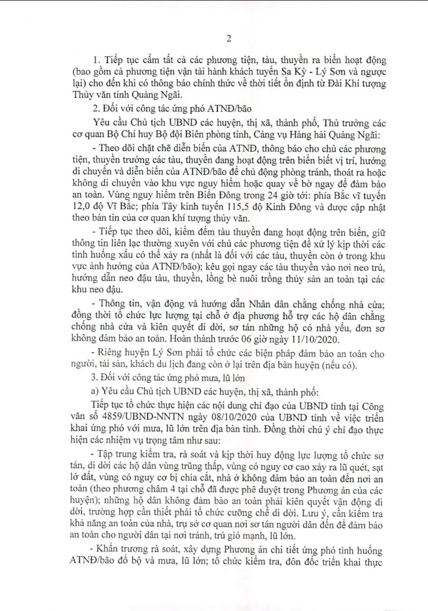 - Riêng huyện Lý Sơn phải tổ chức các biện pháp đảm bảo an toàn cho người, tài sản, khách du lịch đang còn ở lại trên địa bàn huyện (nếu có).