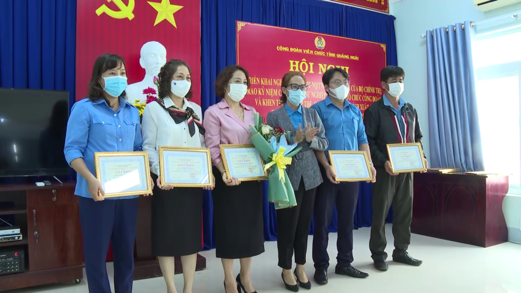 Chiều nay 26/11, Công đoàn Viên chức tỉnh Quảng Ngãi triển khai Nghị quyết số 02 của Bộ Chính trị về “Đổi mới tổ chức và phương thức hoạt động Công đoàn Việt Nam trong tình hình mới”, trao kỷ niệm chương “Vì sự nghiệp xây dựng tổ chức Công đoàn” và khen thưởng các tập thể, cá nhân có thành tích xuất sắc trong công tác phòng, chống dịch COVID-19.