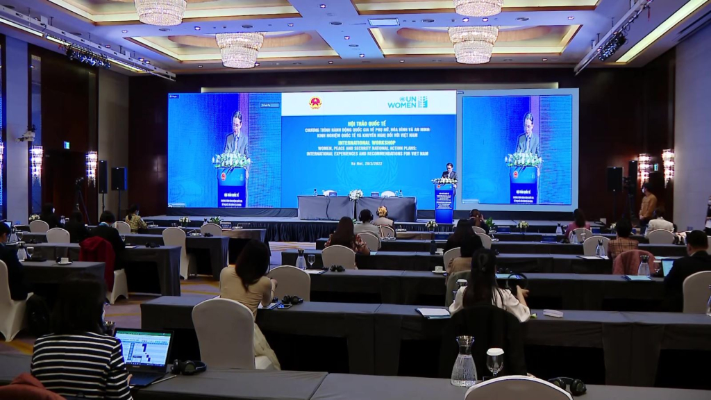 Sáng nay, Bộ Ngoại giao Việt Nam phối hợp với Cơ quan Liên hợp quốc về Bình đẳng giới và trao quyền cho phụ nữ (UNWOMEN) đã tổ chức Hội thảo quốc tế về “Chương trình hành động quốc gia về Phụ nữ, Hoà bình và An ninh: Kinh nghiệm quốc tế và khuyến nghị đối với Việt Nam” dưới hình thức trực tiếp và trực tuyến với sự tham dự của trên 100 đại biểu quốc tế và trong nước.