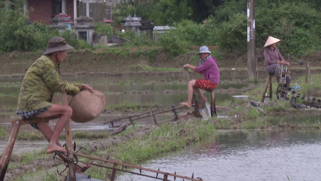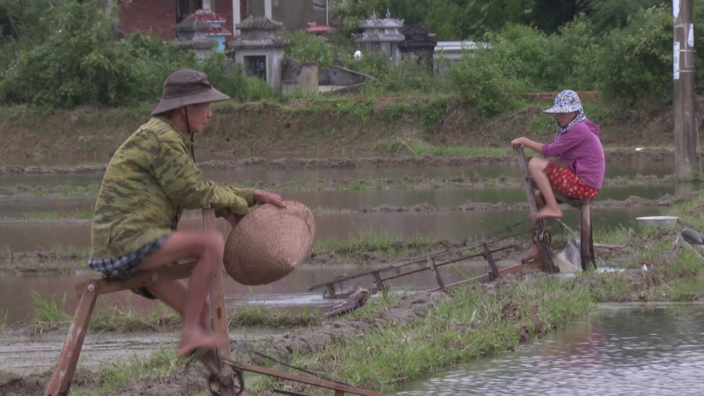 Anh Đoàn Văn Dũng, Xã Hành Phước, huyện Nghĩa Hành, Quảng Ngãi nói: Tui có 2 sào ruộng, chạy máy từ 5 tiếng đồng hồ mới cạn nước trong ruộng. Lúa mới sạ lại bị ngập sâu, phát triển yếu nếu để như vậy mà dặm thì tốn công lắm nên có khi phải làm đất sạ trở lại.