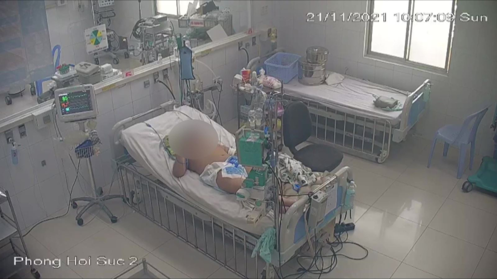 Bệnh nhi thứ nhất là bé trai 9 tuổi, thể trạng béo phì, nhập viện ngày 6/11 trong tình trạng khó thở. Các bác sĩ Bệnh viện Nhi đồng 2 đánh giá tình trạng nguy kịch của bệnh nhân, lập tức hỗ trợ hô hấp, thiết lập đường truyền, đồng thời xét nghiệm PCR xác định bệnh nhi mắc Covid-19. Sau 3 ngày nhập viện tình trạng bệnh của bé ngày càng nặng và nguy hiểm tới tính mạng, các bác sĩ đã áp dụng phương pháp ECMO cho bé trai.