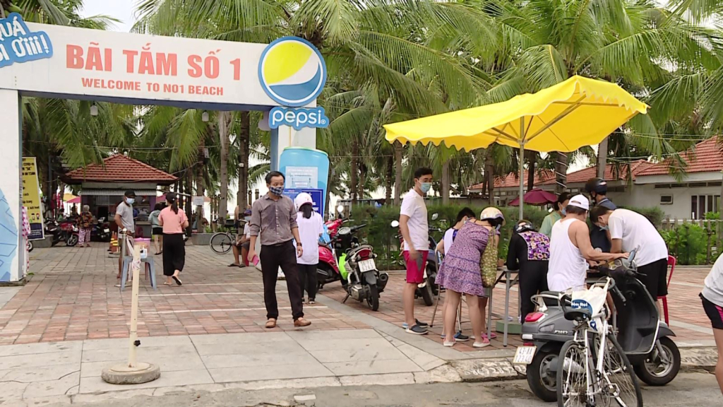 Tuy nhiên, với không gian rộng, không có rào chắn như các bãi biển, lực lượng chức năng mỏng thì việc giám sát thực hiện quy định 5K chủ yếu là nhờ vào ý thức của người dân. Bởi dù được yêu cầu phải khai báo y tế trước khi tắm biển, nhưng cũng đã nảy sinh những bất cập như thế này.