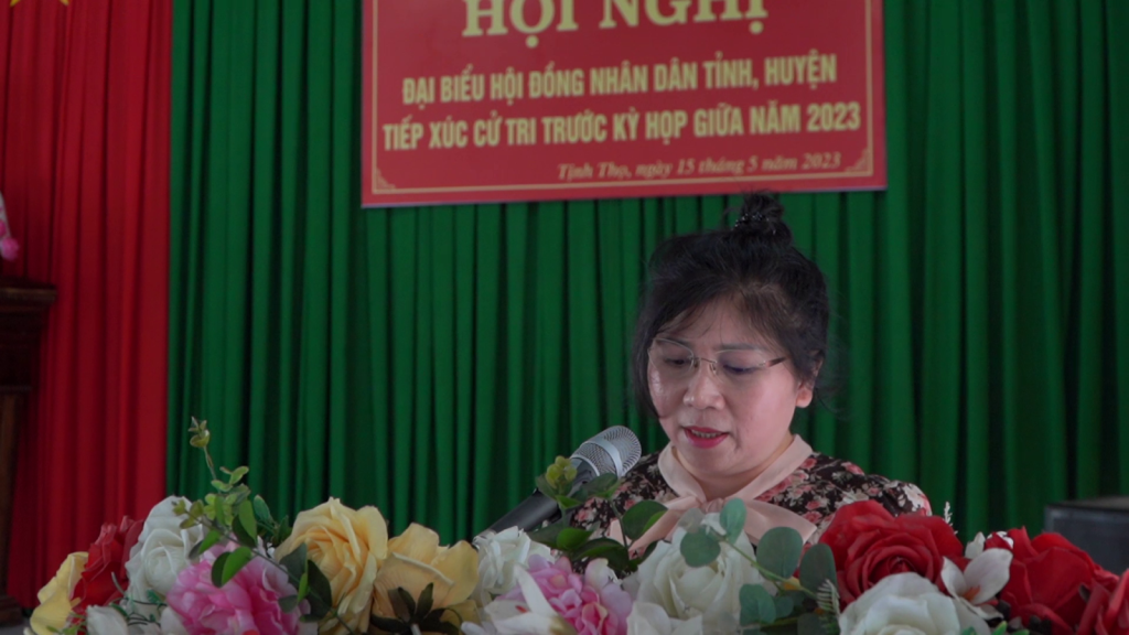 Tại buổi xúc, cử trị xã Tịnh Thọ kiến nghị liên quan đến lĩnh vực đền bù giải phóng mặt bằng các công trình, dự án, thu hồi đất. Cử tri kiến nghị công ty THHH VSIP tiếp tục thực hiện các giải pháp xử lý thoát nước cho khu dân cư, không để nước ngập vào nhà dân mùa mưa; tuyến đường Chợ Ga đi Tịnh Hà đã bị hư hỏng, xuống cấp đề nghị các cấp quan tâm sửa chữa, nâng cấp để nhân dân đi lại thuận tiện; tiếp tục đầu tư xây dựng một số tuyến mương chưa được kiên cố hóa; hiện điểm thu tiền điện quá xa, gây khó khăn cho dân đi lại đóng tiền điện, đề nghị điện lực Sơn Tịnh có những điểm thu tại các thôn để thuận tiện cho dân đi lại đóng tiền điện hơn. Đề nghị huyện quan tâm đầu tư thêm cơ sở vật chất cho bộ phận 1 cửa của huyện để đảm bảo phục vụ nhân dân kịp thời hơn.