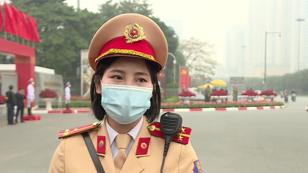 Thượng úy Hoàng Thị Nguyệt, Cán bộ Đội CSGT số 3 Công an Hà Nội nói: Tôi cũng rất là vinh dự được chọn vào đội ngũ để bảo vệ Đại hội Đảng, chúng tôi sẽ cố gắng hoàn thành tốt nhiệm vụ.