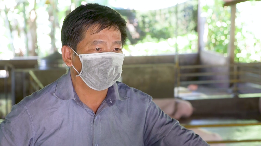 Ông Nguyễn Hồng Thái, Chủ trang trại nuôi heo, xã Tịnh Minh, huyện Sơn Tịnh, Quảng Ngãi nói: Khó khăn là năm ngoái nhập nguồn heo giống rất khan không có heo giống mà nhập về. Năm nay thuận lợi là nhập heo giống chổ nào cũng có nguồn hết, nhưng giá thành vẫn còn cao so với heo thịt, nên mình xây dựng một đàn nái cho ổn định chứ nhập heo ngoài quá tốn kém.