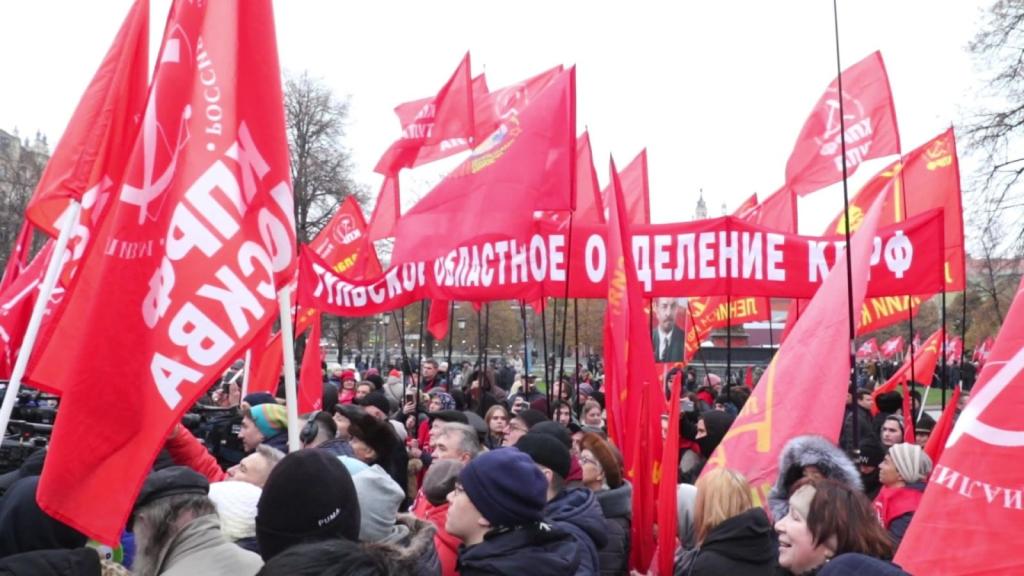 Tại lễ Mít tinh, hàng nghìn người đã cùng nhau ôn lại những giá trị trường tồn của cuộc Cách mạng đã diễn ra cách đây hơn một thế kỷ, cùng hát vang những bài hát cách mạng thời kỳ Xô viết, như Kachiusa, Quốc tế ca.