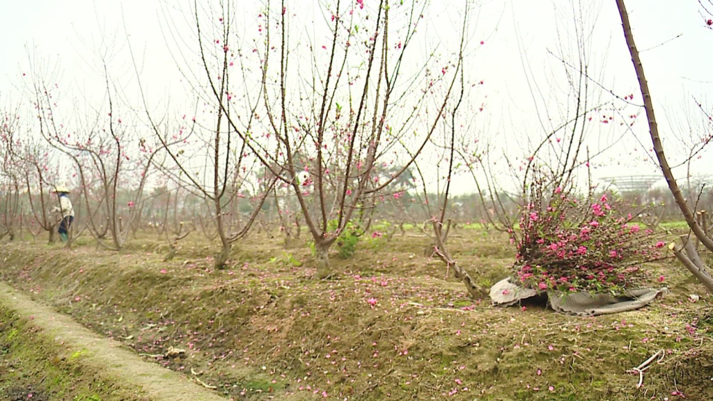 Ông Nguyễn Trung Hảo, Làng La Cả, Hà Đông, chia sẻ: Tôi trồng đào năm nay 30 năm rồi, bây giờ mình cuốc đi, già mới bán được, non thế này mình để lưu năm nào thu xong đầu năm như bây giờ chăm bón lại đâm mầm lên.