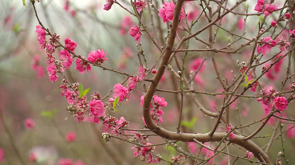 Những cây đào, cành đào lớn giờ mới bung nụ, nở bông.
