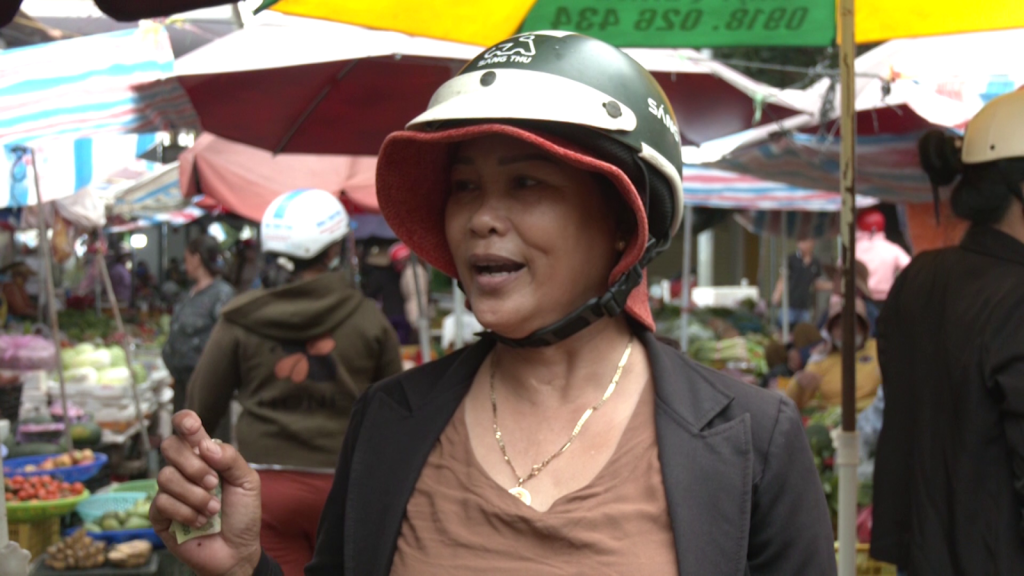 Bà Võ Thị Thìn, Thôn Tây An Hải, huyện Lý Sơn, Quảng Ngãi nói: Mấy hôm nay biển động nhưng hàng hóa đầy đủ rau xanh, thịt đầy đủ, nhưng giá có lên một xí.