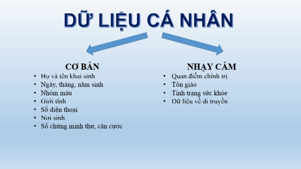 Theo dự thảo Nghị định, dữ liệu cá nhân được chia làm hai loại. Trong đó loại dữ liệu cơ bản gồm họ và tên khai sinh; ngày, tháng, năm sinh; nhóm máu; giới tính; số điện thoại; nơi sinh; nơi thường trú; số chứng minh thư, căn cước; tình trạng hôn nhân; số giấy phép lái xe; mã số thuế cá nhân... Loại dữ liệu cá nhân nhạy cảm gồm quan điểm chính trị, tôn giáo, tình trạng sức khỏe, dữ liệu về di truyền... Bộ Công an đề xuất xử phạt từ 50 đến 80 triệu đồng với trường hợp cá nhân, tổ chức tiết lộ, chia sẻ các dữ liệu cá nhân trái phép, chưa được sự đồng ý của cá nhân, gây tổn hại đến nhân phẩm danh dự của người bị tiết lộ. Mức phạt trên cũng được Bộ Công an đề xuất với các vi phạm về xử lý dữ liệu cá nhân của trẻ em hay hủy, xoá dữ liệu cá nhân trái phép./.