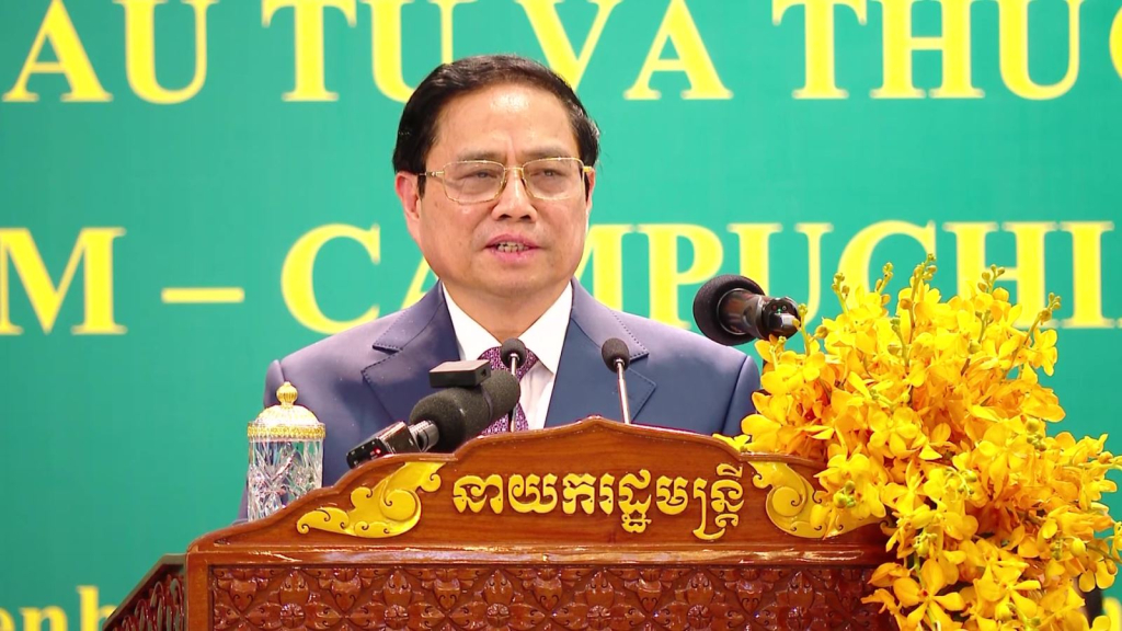 Phát biểu trại Diễn đàn, Thủ tướng Chính phủ Phạm Minh Chính nhấn mạnh, cùng uống chung dòng nước sông Mê-Công, Việt Nam và Campuchia có mối quan hệ hữu nghị truyền thống tốt đẹp và hợp tác toàn diện, trong đó hợp tác về đầu tư, thương mại không ngừng phát triển và đạt được nhiều dấu ấn quan trọng.