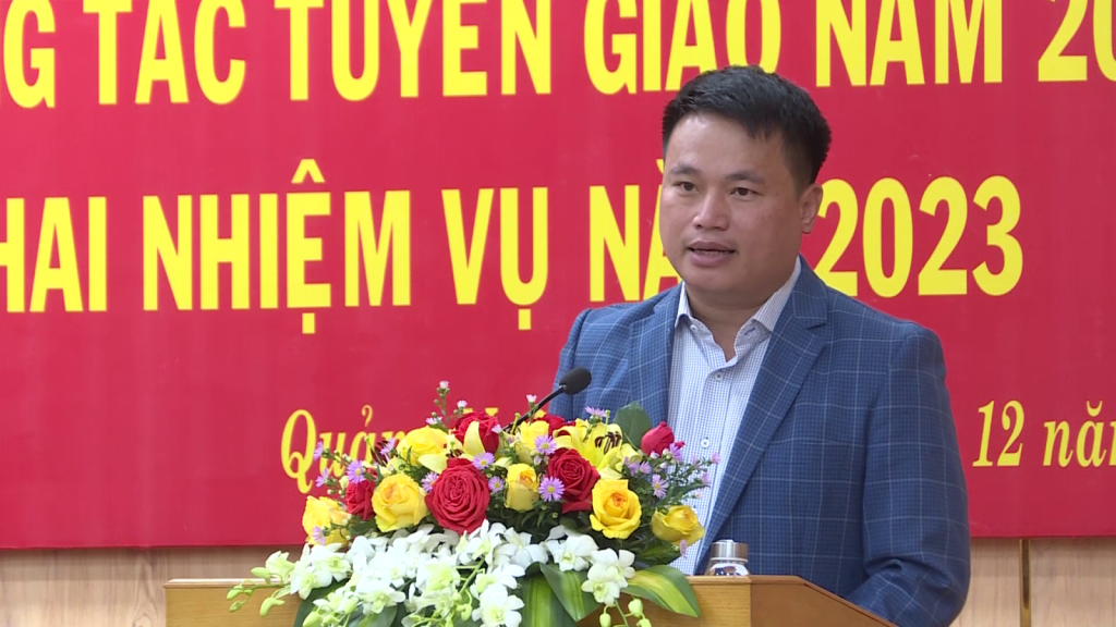 Phó Bí thư Thường trực Tỉnh ủy, Trưởng Đoàn đại biểu Quốc hội tỉnh Đặng Ngọc Huy nhấn mạnh, năm 2023, dự báo tình hình còn nhiều khó khăn. Ngành Tuyên giáo toàn tỉnh cần nhạy bén, nỗ lực nhiều hơn nữa để làm tốt công tác tư tưởng của Đảng.