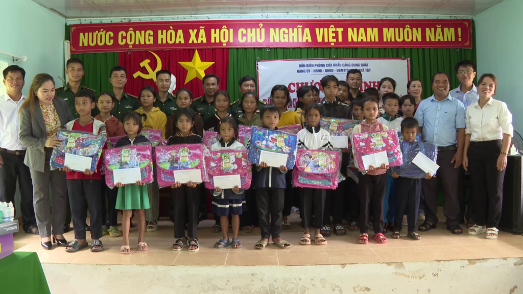 Đồn Biên phòng cửa khẩu cảng Dung Quất phối hợp với UBND xã Trà Tây, huyện Trà Bồng tặng 20 xuất quà, mỗi xuất trị giá 500.000 đồng cho 20 gia đình chính sách, hộ nghèo; tặng 30 xuất quà gồm tiền mặt 300.000 đồng và cặp sách cho các em học sinh nghèo đến trường trong năm học mới.