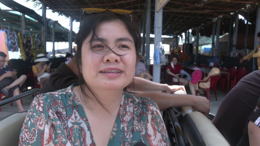 Chị Lương Thị Kim Huyền, Du khách Hà Nội chia sẻ: Xe điện thì mình sẽ di chuyển và được trải nghiệm gần gủi với thiên nhiên và có một phương tiện đi lại rất thuận tiện. Bạn em thấy nếu mà đi du lịch trải nghiệm xe điện bạn em cảm thấy tốt hơn, vui hơn.