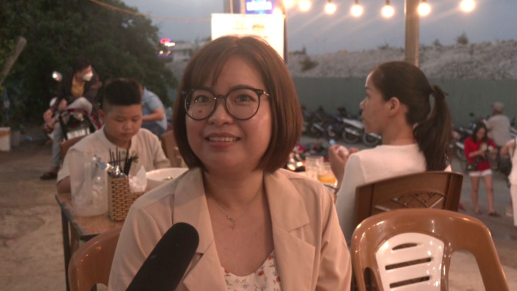 Chị Nguyễn Thanh Trà, Du khách Tp. Hà Nội chia sẻ: Đảo Lý Sơn rất là đẹp, không khí rất là mát. Buổi tối nhìn từ đây ra thấy rất là nhiều tàu cá, rồi nhìn về đảo lớn nữa, thật sự ở đây rất là đẹp.